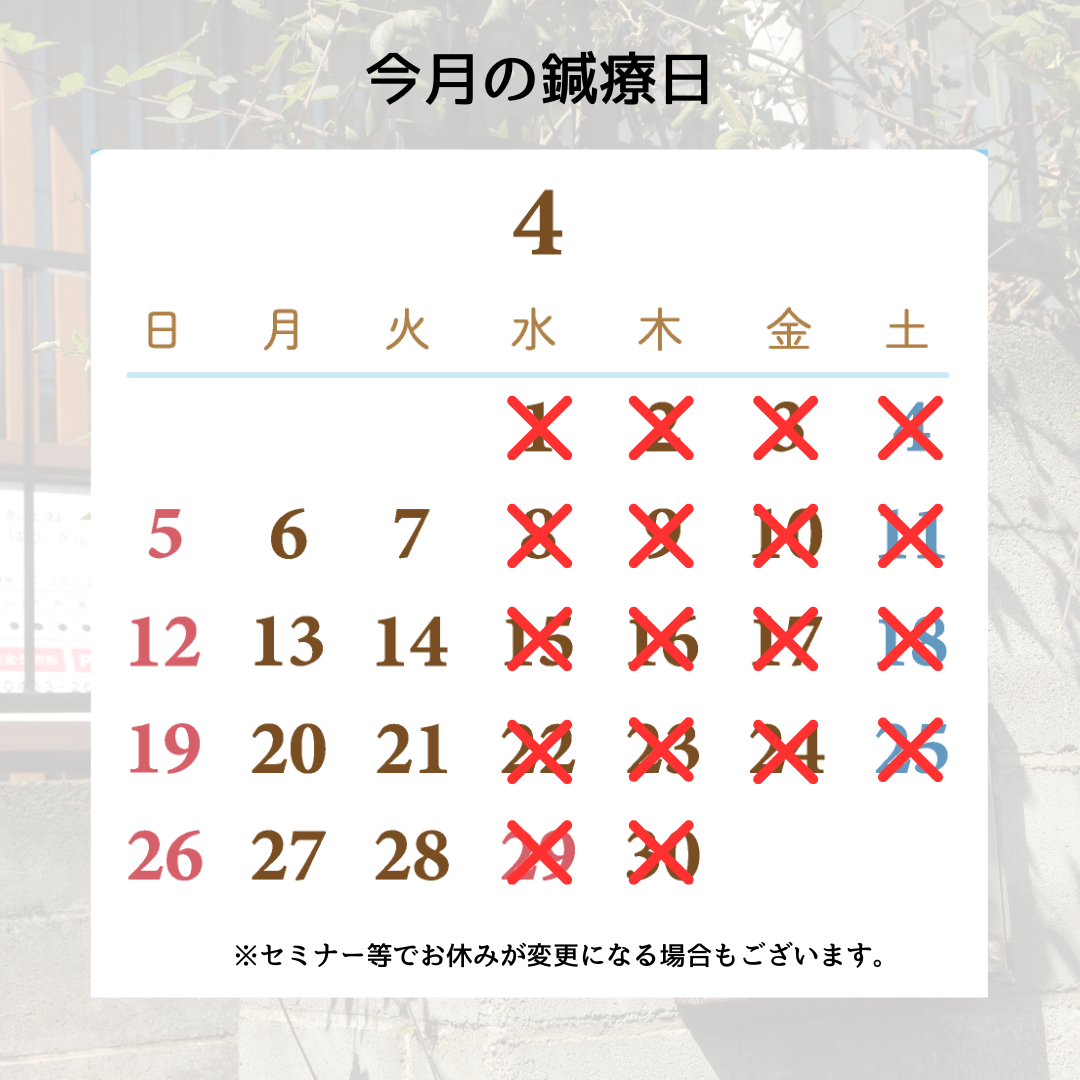 4月の鍼療日のお知らせ